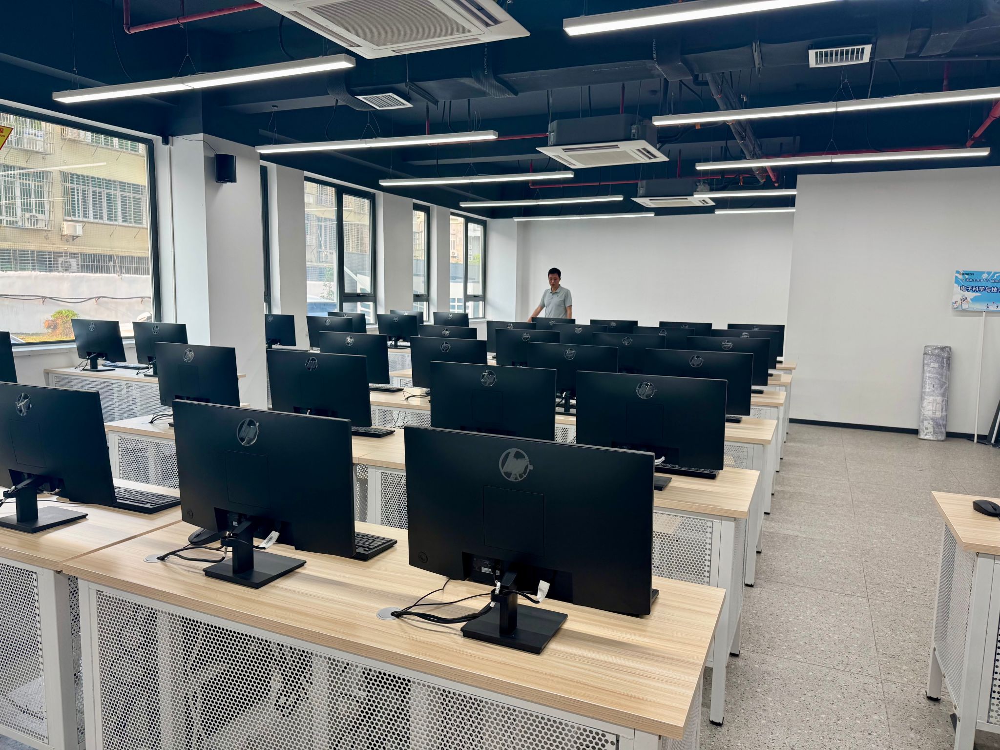 此次检查包括学院所有消防器材配备与有效性,确保其处于完好可用状态;实验设备的运行状况、安全操作规程的执行情况;学生自习室及老师办公室的用电安全等。